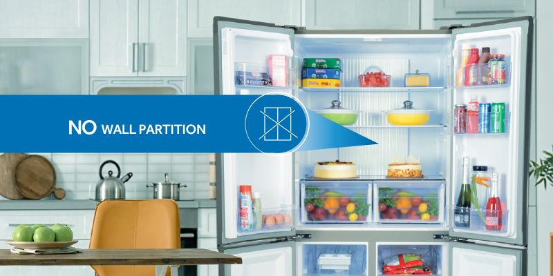 Wider & tougher shelves with no wall partition in between which allows you to store larger utensils & find the kept objects easily