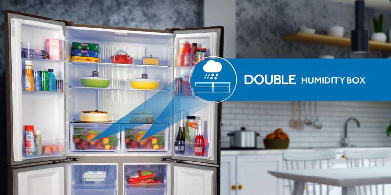 "with dual humidity box, store more vegetables and get a long lasting freshness"