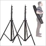 Air cushioned stand upon releasing quick lock levers, the pipes come down slowly. Riser locks are made of polyamide and are provided with quick lock levers. Lower central leg joint is made of steel for stability and strength. Two of these light stands can be carried in stand pack pt.