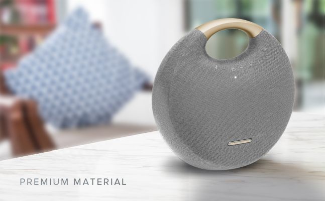 With its signature round silhouette, premium fabric cover and aluminum handle for easy portability, the Harman Kardon Onyx Studio 6’s combines style and convenience in a sophisticated and refined Bluetooth speaker. It features an IPX7 waterproof design to use at any place within the home without worrying. Offering up to 8 hours of playtime on a single charge and wireless dual sound, it can wirelessly connect two Harman Kardon Onyx Studio 6 speakers to elevate music listening experience. With its iconic yet subtle design, the Harman Kardon Onyx Studio 6 is the ideal complement of any interior.