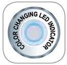 Colour-changing LEDs that change from blue to amber to indicate the hotness of the water.