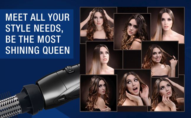 This Air Styling Kit aims to make hair styling easier. They are essentially 5-in-1 tools that combine hair drying, brushing and styling functions. It is equivalent to having hair dryer, hair curler, hair brush and styling comb all at once, which can save time and money and create perfect customized hair style easily. Unique airflow vents allow air to flow to the roots for added lift and body.
