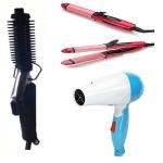 HEMIZA 2 in 1 Hair straightener and curler For Women and Men And Mini Portable Hot Hair Dryer 1000W And Iron Comb
