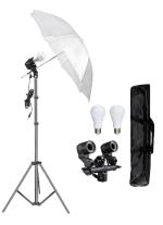 HIFFIN E27 Studio Double Holder KIT Umbrella White + Studio Light Stand 9 FT+ Umbrella and Bulb Holder KIT Mark I |1 Double Holder,1 Light Stand 9FT,1 Umbrella, 2 X 20 WT LED Bulb