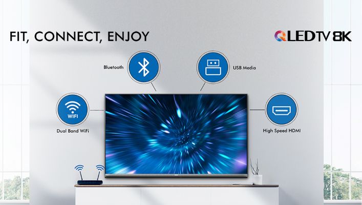 | Key Features | Supported Apps: Netflix, Prime Video, Disney+ Hotstar, Youtube, Zee5, Sony Liv, ErosNow, JioCinema, Voot, SunNxt, YuppTV, MX Player TV, Hungama, ALTBalaji, ShemarooMe & many more on Official Google Play Store Resolution: 7680 x 4320 - Ultra HD(8K) Connectivity: 2 USB, 2 HDMI, Ethernet LAN In, Headphone/Earphone Jack Sound: 36 Watts + Dolby Atmos, Dolby Audio, Multi Channel Surround Sound Refresh Rate: 120 Hz |
