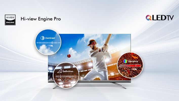Hi-View Engine Pro: QLED, Authentic Color, Brilliant Contrast, Clear Motion, Distinct Detail