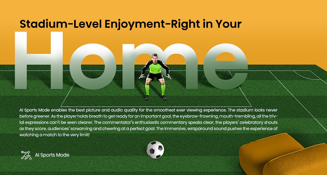 AI sports mode enables the best picture and audio quality for the smoothest ever viewing experience. The stadium looks never before greener.
