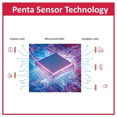 Hitachi's intelligent Penta sensor technology with its advanced microcontroller offers perfect cooling even in extreme summer conditions, optimises cooling in load variation and protects critical components of the AC.