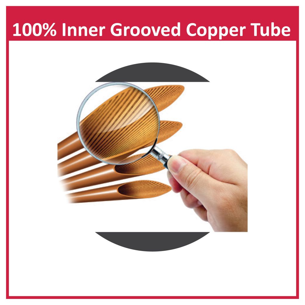 Hitachi's 100percent inner grooved copper ensures faster cooling with its turbulent refrigerant flow that enhances heat transfer rate