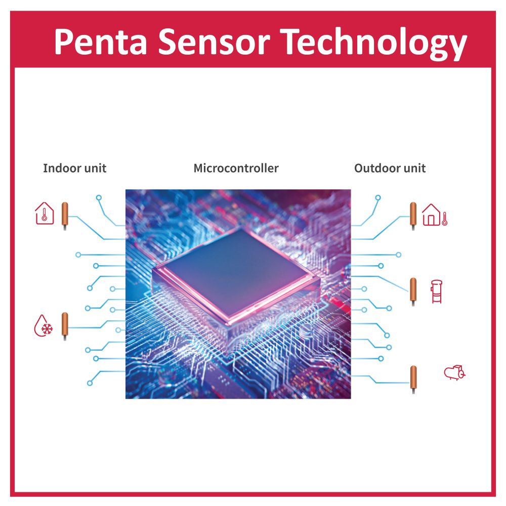 Hitachi's intelligent Penta sensor technology with its advanced microcontroller offers perfect cooling even in extreme summer conditions, optimizes cooling in load variation and protects critical components of the AC