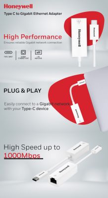 Honeywell High-Speed Type C to RJ45 Gigabit Ethernet Adapter, with Network LAN speeds of 10/100/1000 MBPS, Universally Compatible with all Type C MacBooks, laptops, PCs, Xbox, PS5, Tablets, etc.
