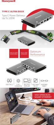 Honeywell 8-in-1 Type C Ultra Dock with 4K HDMI, VGA, RJ45 Ethernet, 2xUSB 3.0 & Type C 3.0 port, SD & Micro SD slot, Compatible with all Type C Devices- MacBook Laptop, PC, thunderbolt 3