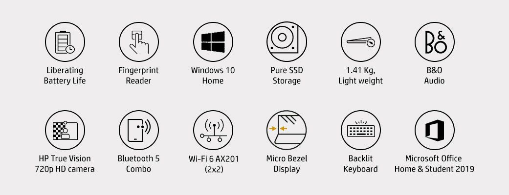 Experience rich and authentic audio through the Bang and Olfusen Play. Each sound enriched to immerse you in a sound that takes you away. Combining it with the Dual HP Speakers and HP Audio Boost, brings to life each note and sound, be it when you're listening to music or watching a movie.
