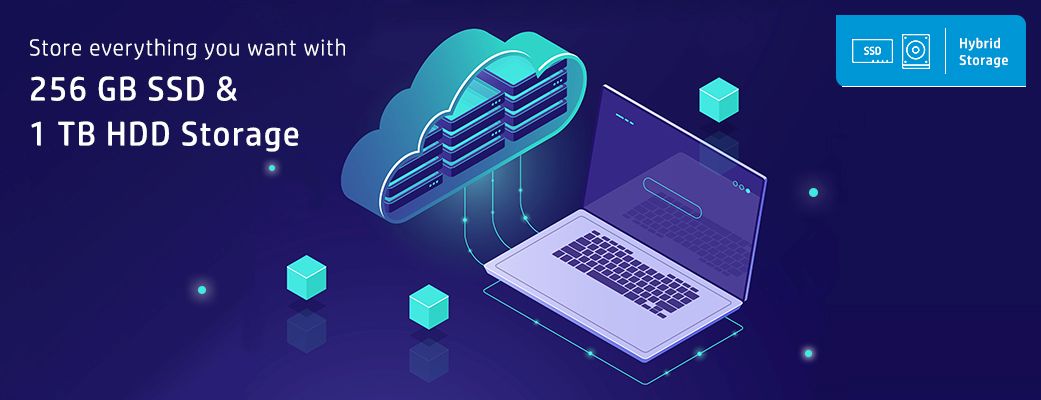 Boot up in seconds with lightning fast speed with hybrid storage of 256 GB PCIe SSD and 1 TB HDD 5400 rpm SATA.