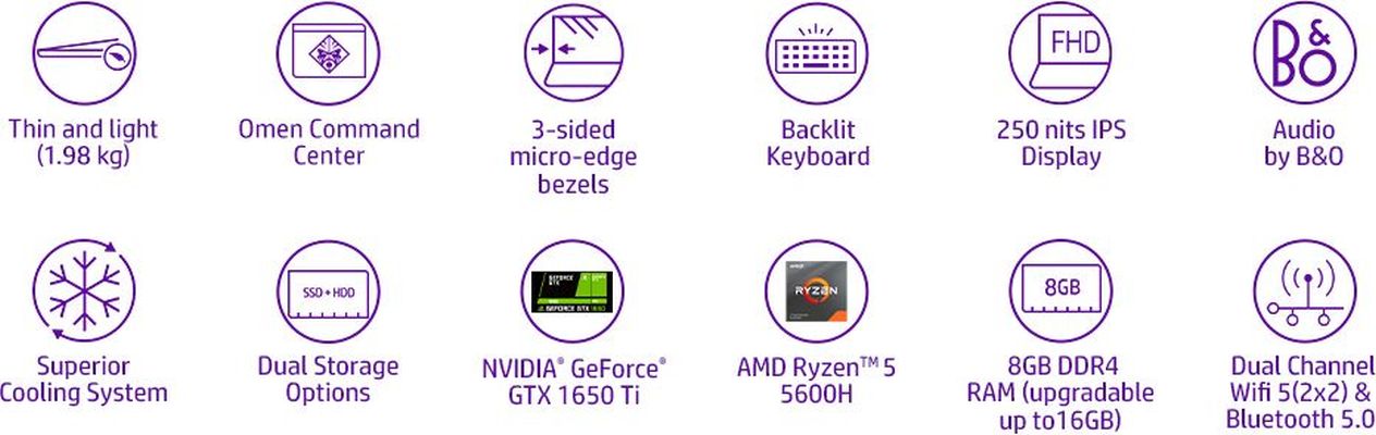 Device Protection Plan AddedHP 15-EC1048AX Pavilion Gaming Laptop (AMD Ryzen 5 4600H/8GB/1TB HDD + 256GB SSD/4GB Nvidia GeForce GTX 1650 Graphics/Windows 10//FHD), 39.62 cm (15.6 inch)