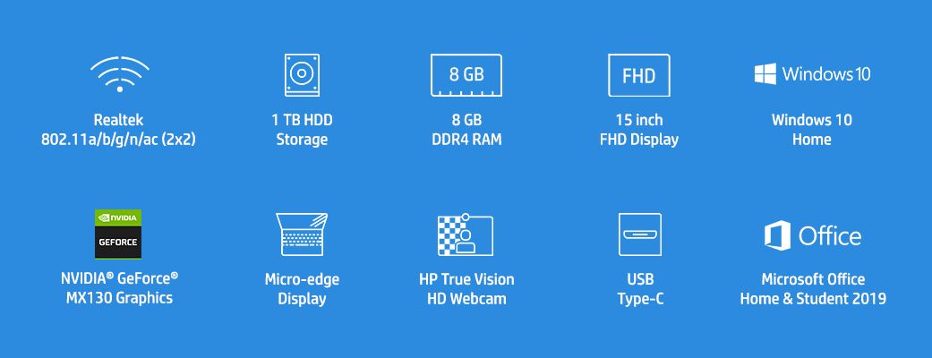 Device Protection Plan AddedHP 15s-du2061TX Laptop (10th Gen Intel Core i3-1005G1/8GB/1TB HDD/2 GB Nvidia GeForce MX130 Graphics/Windows 10/MSO/FHD), 39.6 cm (15.6 inch)