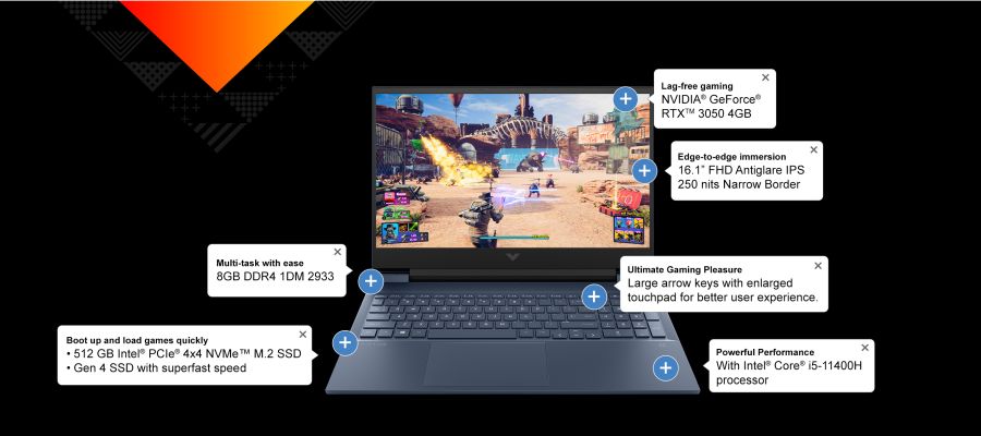 Device Protection Plan AddedHP 16d0003TX Victus Gaming Laptop (11th Gen Intel Core i5-11400H/8GB/512GB SSD/4GB Nvidia GeForce RTX 3050 Graphics/Windows 10/MSO/FHD), 40.9 cm (16.1 inch)