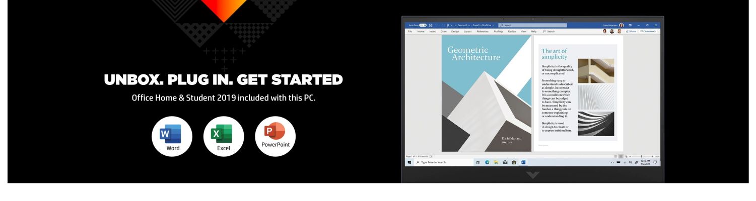 | Included Software | McAfee LiveSafe (30 days free trial as default), Microsoft Office Home & Student 2019, HP Documentation, HP e-service, HP BIOS recovery, HP SSRM, HP Smart, HP Jumpstarts |