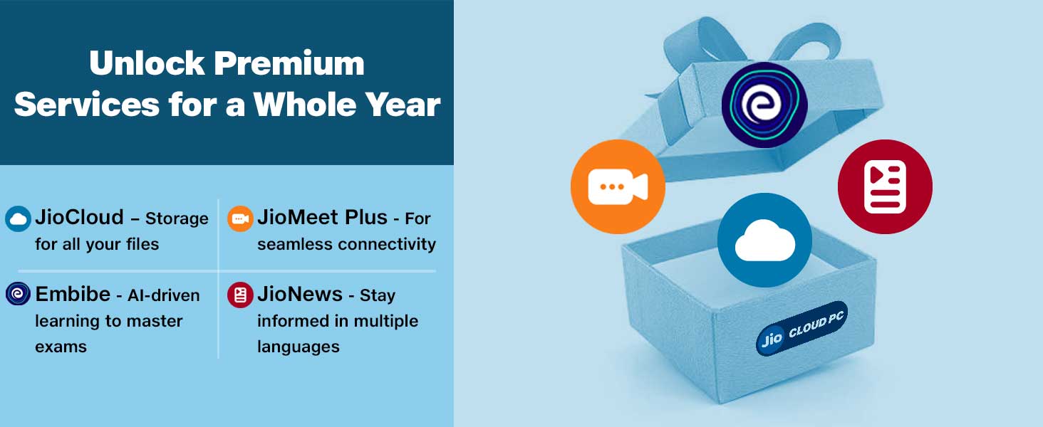 - Other bundled applications (free for 1-year): Embibe Students Application, JioMeet Plus and JioNews