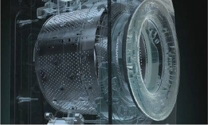 Smooth crescent moon grooves on the drum surface create a gentle water cushion that prevents damage to fabrics.