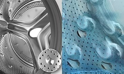 Water is energised by this built-in device. The filter treatment dissolves detergent better to give clothes a softer wash.