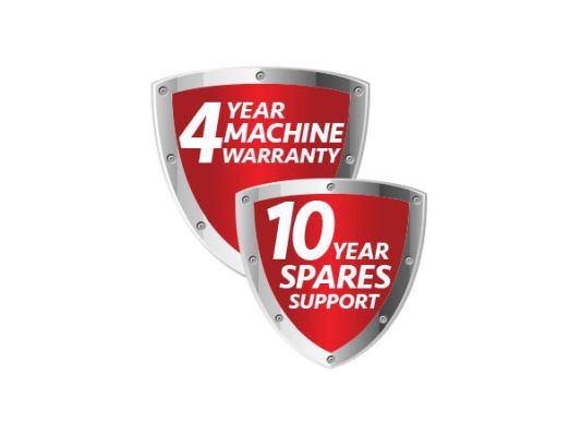 Our machines are built to last. First-of-its-kind 4 year genuine warranty and 10 year spare parts support.