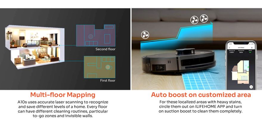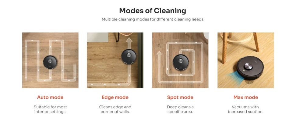 A10s has four modes of cleaning like Auto mode, Edge mode, Spot mode, Max mode