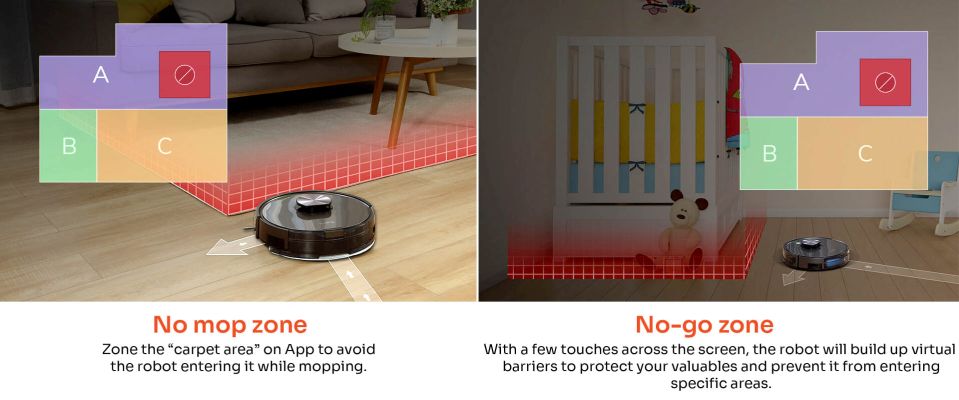 From ILIFE HOME APP you can make No mop zone and No-go zone