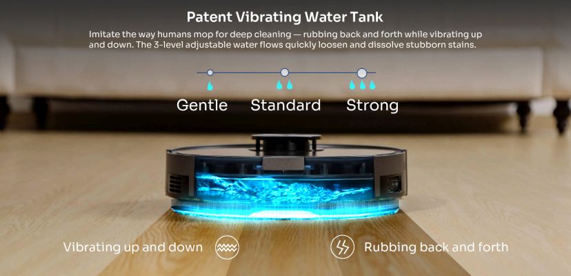 A10s has vibrating water tank that imitate the way humans mop for deep cleaning- rubbing back and forth while vibrating up and down.