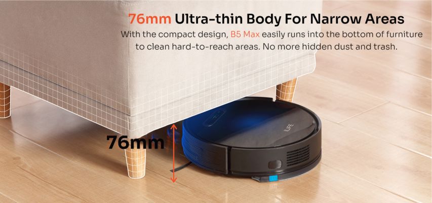 Robot height 76MM,free access to the bottom of furniture, cleaning without any missing corner