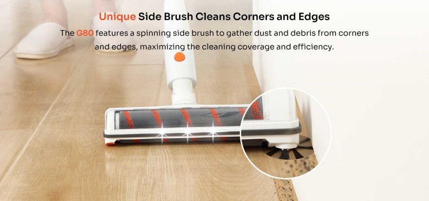 | Key Features | Durable Nidec brushless motor that offers up to 22Kpa suction Unique spinning side brushes to cover corners and edges Multiple modes of cleaning for various cleaning requirements 4 stage filtration with a cyclone system to separate different sized dust particles High capacity 2500mAh battery that allows efficient cleaning for 45 minutes LED display showing real-time device status and the cleaning modes Swivel motorized floor head for smooth cleaning around corners and edges Built-in LED lights to illuminate dark areas for cleaning, Easy storage and accessibility Adjustable suction power, depending on the level of cleaning required Convenient one-touch disposal and washable filter |