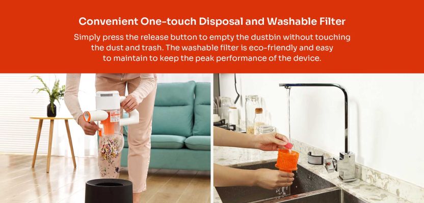 - Built-in LED lights to illuminate dark areas for cleaning, Easy storage and accessibility