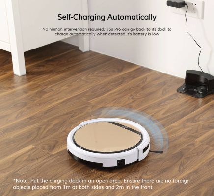 No human intervention required, V5s Pro can go back to its dock to charge automatically when detected its battery is low.