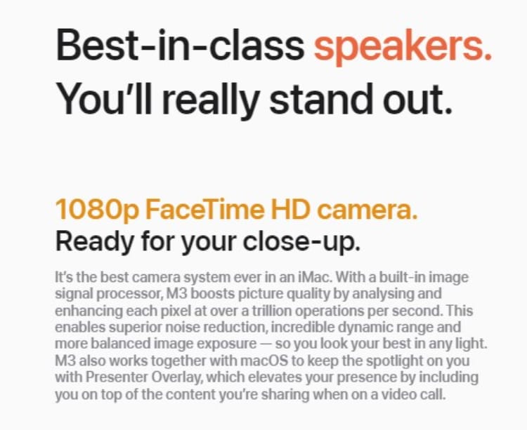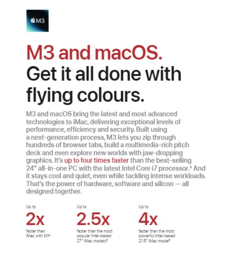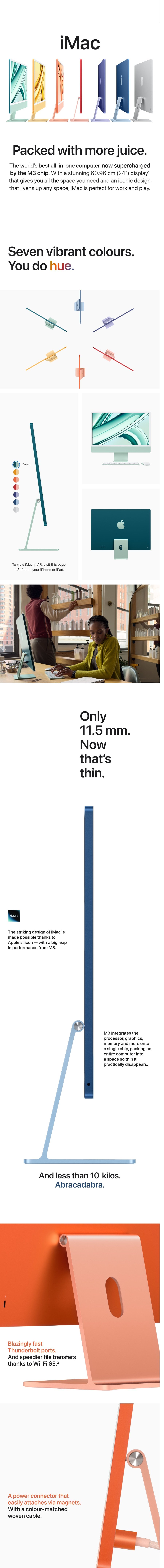 | Key Features | Apple M3 Chip with 8 core CPU 8 core GPU and 16‑core Neural Engine 256GB SSD storage 8GB unified memory Two Thunderbolt / USB 4 ports Magic Mouse Magic Keyboard - US English 60.96 cm (24 inch) 4.5 K Retina Display |