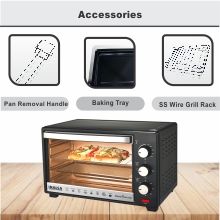 The enameled baking sliding grill tray assures long lasting good looks, easy maintenance and better baking performance in everyday use. The steel wire rack makes the OTG perfect for various grilling needs. All accessories are rust free for easy maintenance & cleaning.