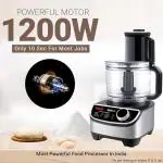 - This multi-function 1200W food processor comes equipped with 12 accessories Ideal for busy kitchens and can do any tasks including grinding, blending, mixing & juicing.