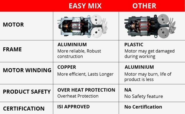 - Half the mixing effort: Easy Mix has 250 W power that provides powerful processing & at the same time is energy saving. Save time & money with this appliance. It performs all your blending, whisking & kneading tasks fast & efficiently.