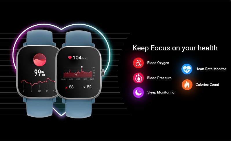 Always Keep Focus On Your Health Wih Urban Lite X Smartwatch like: Blood Oxygen Level (SPO2) , Continuous Heart rate monitors, Blood pressure, Sleep monitor,, Pedometer, Sedentary Reminder & Step count.