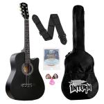 The 96.52 cm (38 inch) Intern INT-38C Acoustic Guitar kit(Black) has a cutaway design allows easy access to higher frets. A spruce top and apathies back and sides provide great tone and sound.