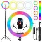 - Infinite Lighting Possibilities: Discover boundless creativity with our 16-inch RGB Ringlight—the industry's largest! With lamp bead color temperature ranging from 2700K to 7000K, it offers infinite dimming, providing versatile warm and white light options to suit any mood or setting, guaranteeing an immersive lighting experience for your creative ventures.