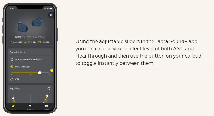The noise-isolating fit of Elite 7 Pro is so good that even without ANC, you’ll find they block out a whole lot of noise. The combination of this noise-isolating fit plus our powerful adjustable ANC makes for an impressive total noise cancellation experience that has to be heard to be believed.