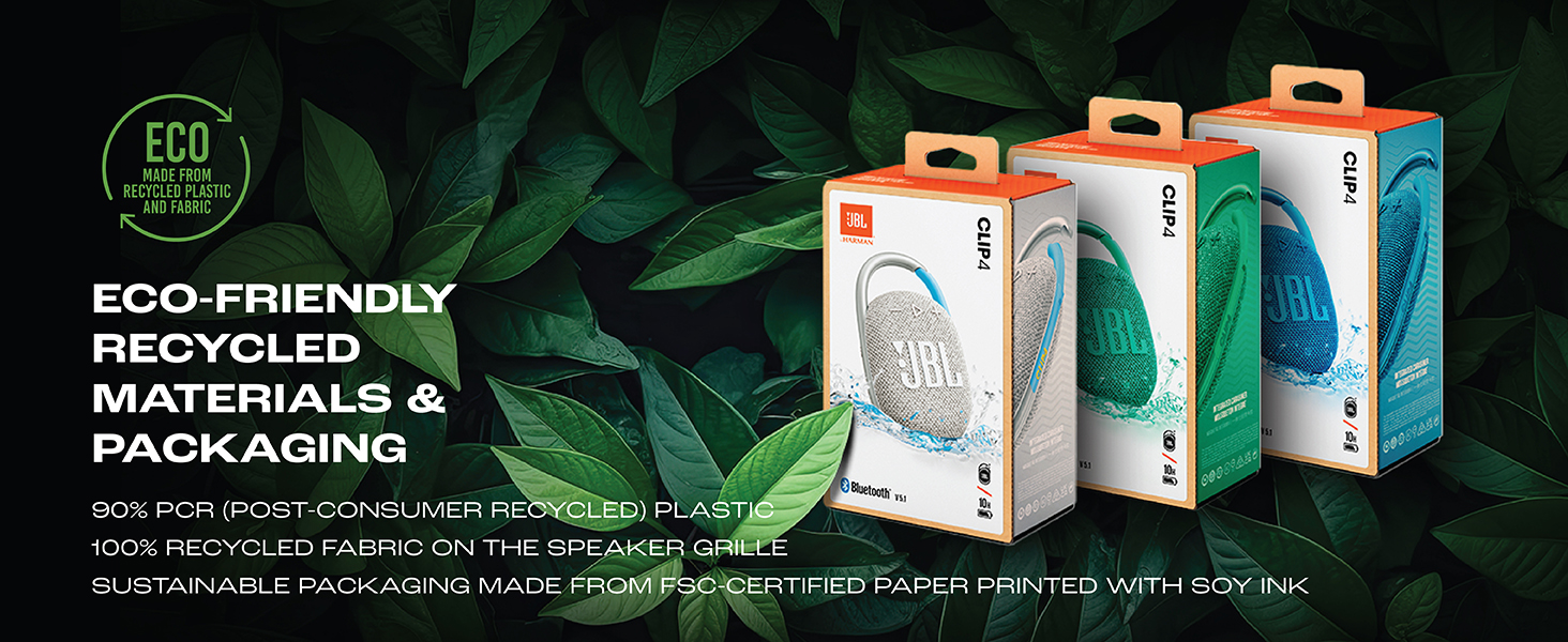 - Rich JBL Original: Pro Sound JBL Pro Sound delivers surprisingly rich audio and punchy bass from Clip 4 Eco's compact size
