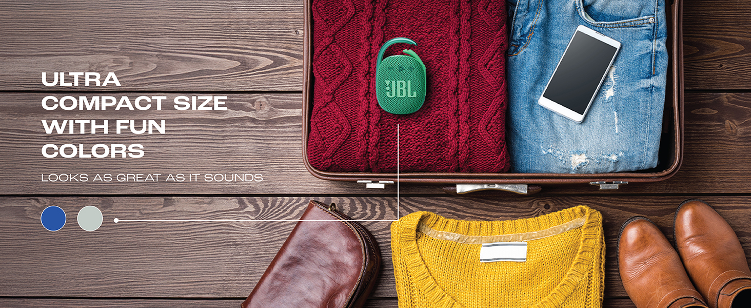 - Bold style and ultra-portable design: JBL Clip 4 Eco ‘s ultra-portable design goes great with the latest styles, and its colorful fabrics and expressive details make it look as great as it sounds