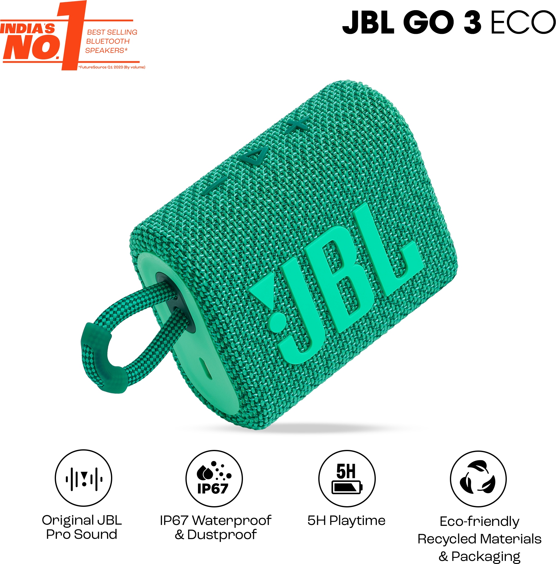 - Bold style and ultra-portable design JBL Go 3 Eco ultra-portable design goes great with the latest styles, its expressive details make it look as great as it sounds