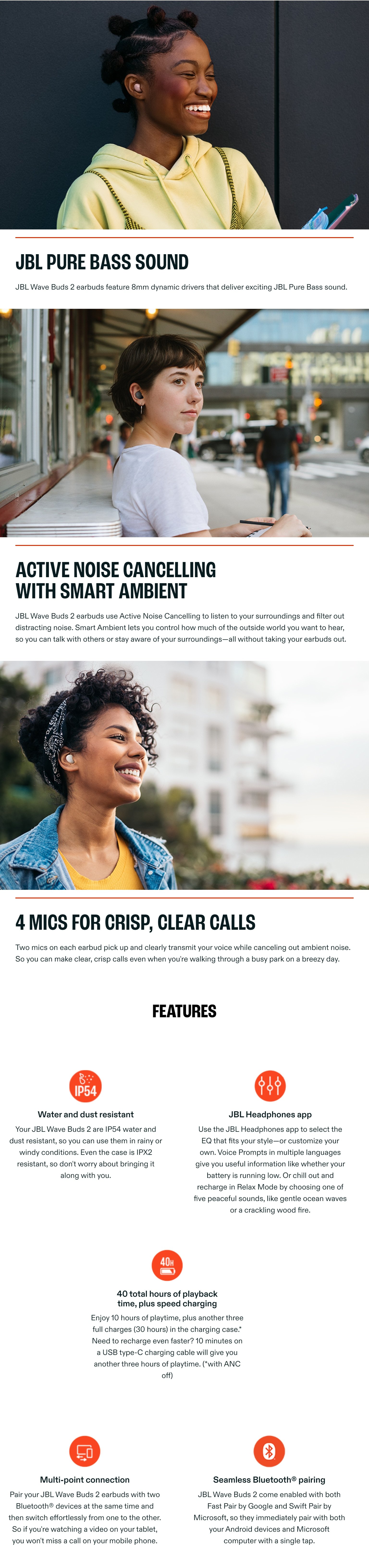 | Key Features | JBL Pure Bass Sound Active Noise Cancellation 40 Hours of Playback time 4 Mics for Crisp and Clear Calls Multi Point Connection Water and Dust Resistant JBL Headphone App |