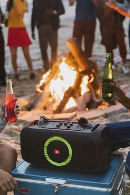 - AMAZING JBL ORIGINAL PRO SOUND: Find your beat with 100W of powerful JBL Original Pro Sound. Indoors or out, the JBL PartyBox On-The-Go delivers crisp highs, pure mids, and deep bass, with Bass Boost to keep the good times going all night.