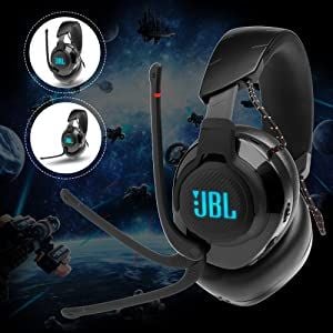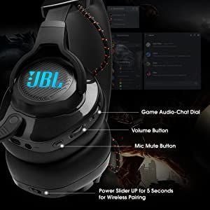 | Key Features | JBL Quantum Surround with DTS Headphone X 2.0 providing Immersive Surround Sound Experience JBL Quantum SOUND Signature from 50mm Drivers provides realistic soundscape Lossless 2.4GHz Wireless headset with 14 Hours Battery Life & 2 Hours Charging time DISCORD Certified game-chat balance dial supports you with Separate Sound cards for game and Chat audio Compatible with all gaming platforms including PC gaming, Xbox, PlayStation, Nintendo, Switch, Mobile, Mac and VR User friendly JBL Quantum Engine PC software customization suite for Different user profiles & Microphone Setting modifications RGB Effects Tuner to create your own lighting effects Lightweight and durable headband with Leather wrapped detachable memory foam cushioning |