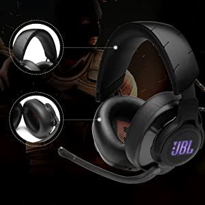 JBL Quantum 600 headset lets you rally the troops and opponents with clarity. The flip-up, voice focus directional boom mic enables crystal clear communication and comes with auto on/off and several mute options.