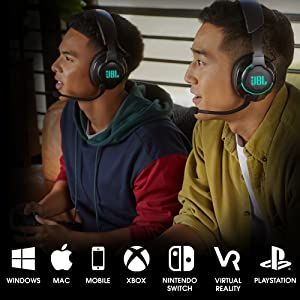 Created for PC gaming, JBL Quantum 600 headset is also compatible with Xbox, PlayStation, Nintendo Switch, Mobile, Mac and VR.