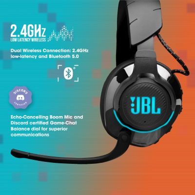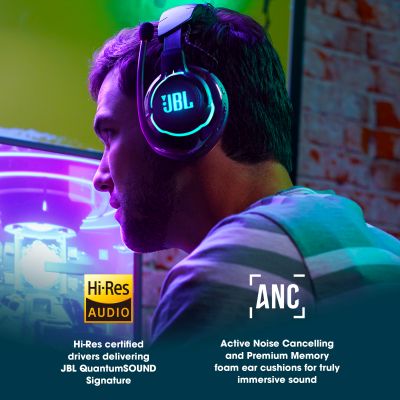 | Key Features | JBL Quantum Surround with DTS Headphone X 2.0 providing Immersive Surround Sound Experience JBL Quantum SOUND Signature from Hi-Res Certified 50mm Drivers provides realistic soundscape Distraction Free gaming with Active Noise Cancellation and Voice Focus adjustable Unidirectional Boom Mic with Echo Cancelling Technology Dual Wireless-equipped for Lossless audio freedom with 2.4GHz Wireless & Bluetooth 5.0 14 Hours Music Playtime with RGB lighting off & 2 Hour Charging Time DISCORD Certified game-chat balance dial supports you with Separate Sound cards for game and Chat audio Compatible with all gaming platforms including PC gaming, Xbox, PlayStation, Nintendo, Switch, Mobile, Mac and VR Powerful JBL Quantum Engine PC software customization suite for Different user profiles & Microphone Setting modifications RGB Effects Tuner to create your own lighting effects |